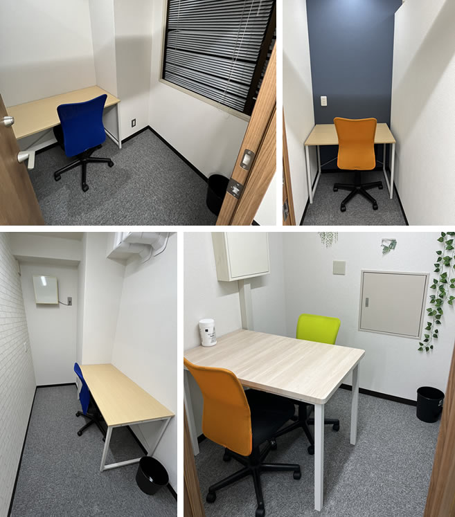 個室は最安級の料金設定!ベンチャー企業の拠点としても最適!様々な大きさのスペースを用意しておりますので、人数や規模に応じてお選びいただけます。各種許認可申請のための事務所としても経営管理VISA取得のための事務所としても利用可能です。